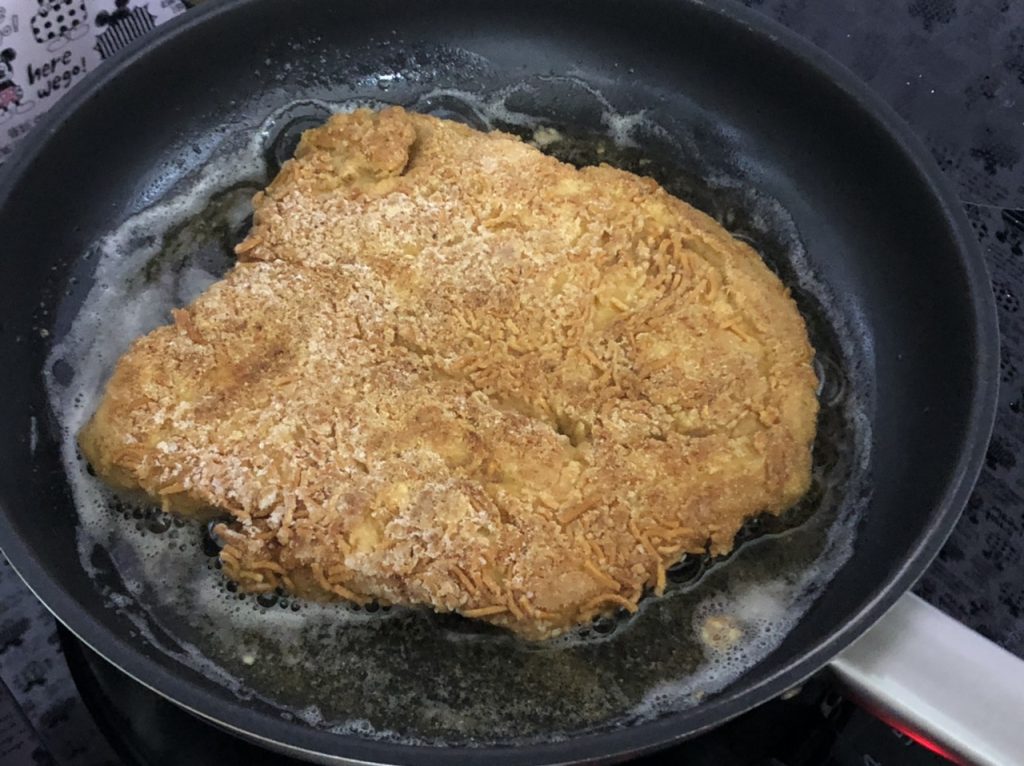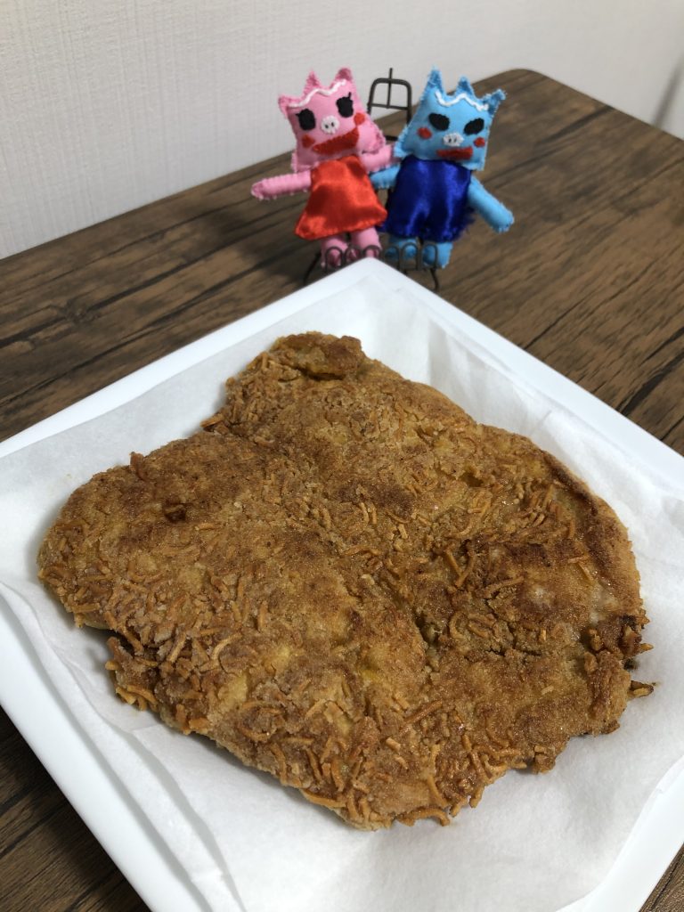 - 唐揚げの素と粉々にしたベビースターラーメンを袋に入れて揉み込む
